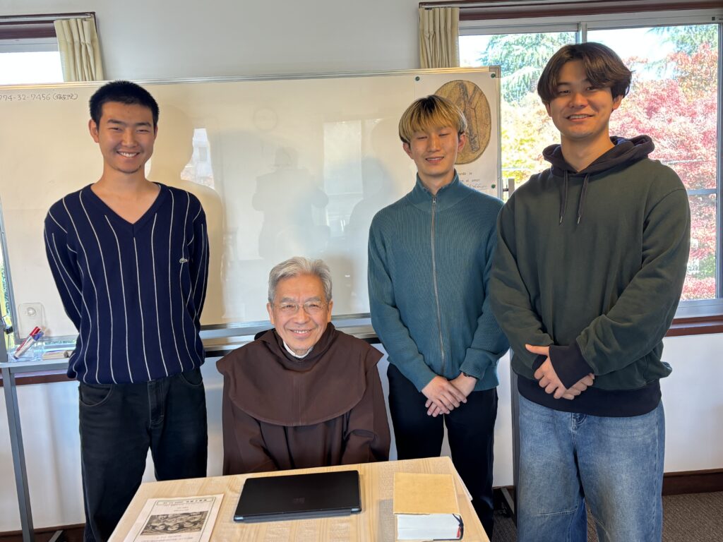 2025年11月15日~17日の日程で、京都府宇治市郊外にあるカルメル修道会宇治黙想の家において秋季修養会を開催した。参加者は4年生見定君と2年生花田君、三浦君の3名と少なかったが、修道院長中川博道神父様の講話など充実した修養会であった。